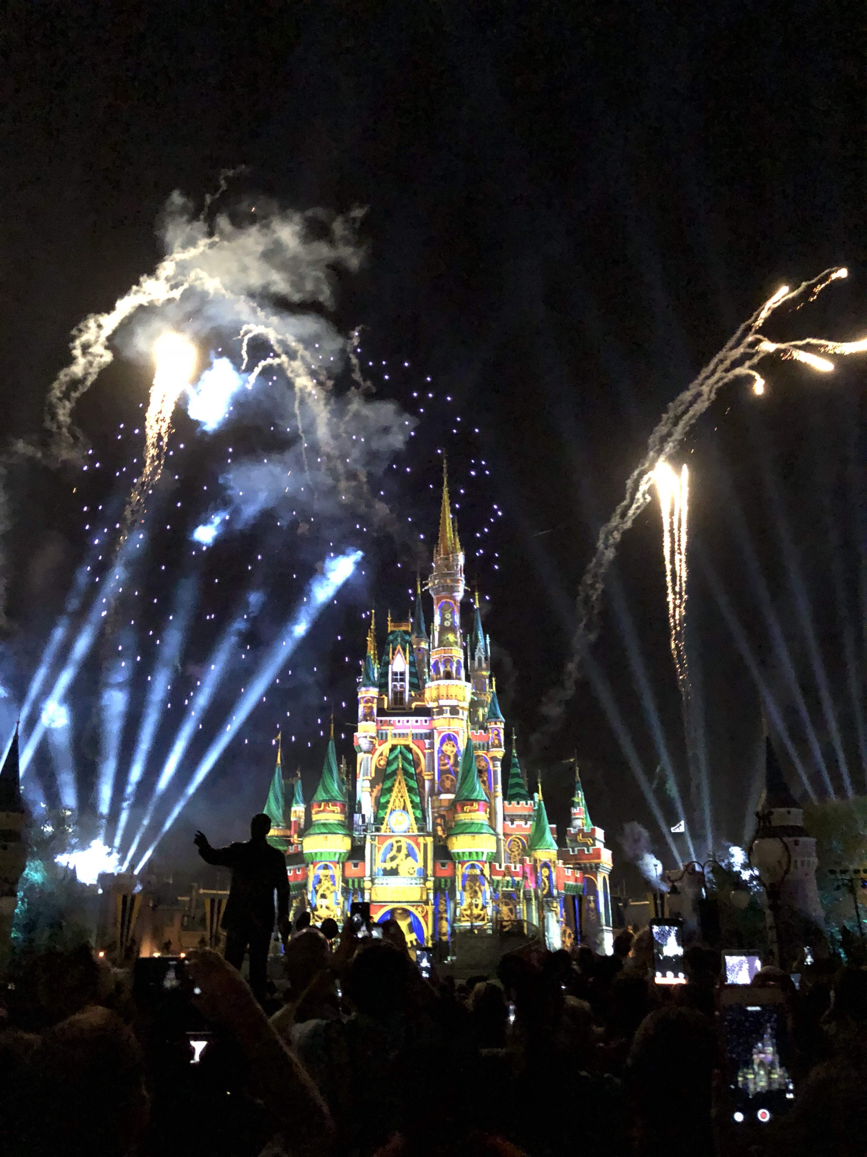 - We picked a great spot directly facing the castle for the fireworks about 30 minutes early, which seems like a decent amount of time. The projection mapping worked even better from this angle, of course:
