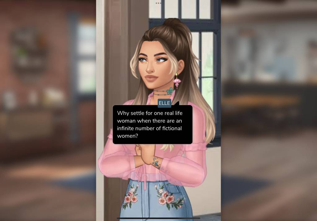The writing is much better than Level Up but the presentation is less inspired, with no minigames other than a short fine art “quiz”. Once again, I can customise my look, name, and dream partner, but my character has to be a woman. Of course, Sarah (the default name) has the same thin, white look as Elle, in her early 20s.