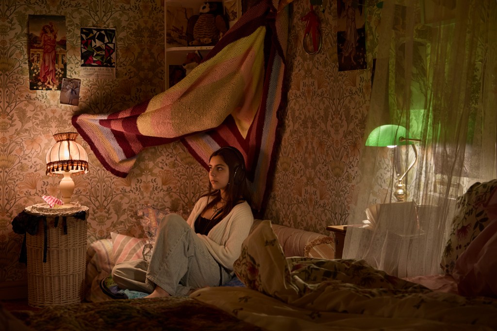 The actual experience began in a corridor leading to a brightly-lit teenage bedroom from the 2000s. We were instructed to lie on small beds while Helena Bonham Carter, in full ASMR mode, narrated a bedtime story. The room dimmed, then lights shone on posters and drawings on the wall in time with the story of Princess Viola: her parents died when she was young, leaving her to be unhappily wed to a prince.